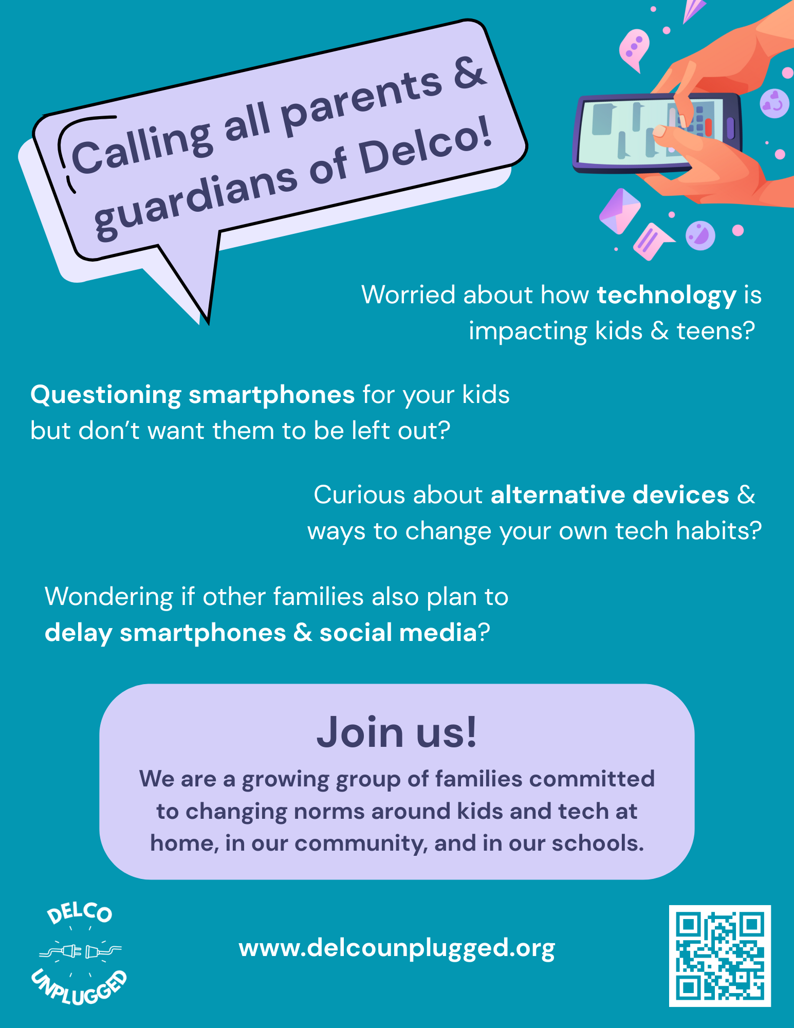 Delco Unplugged is a growing community of families in Delaware County, PA choosing to delay smartphones and social media for our children.